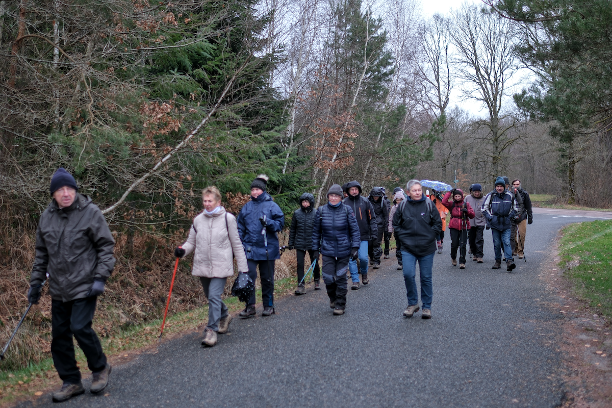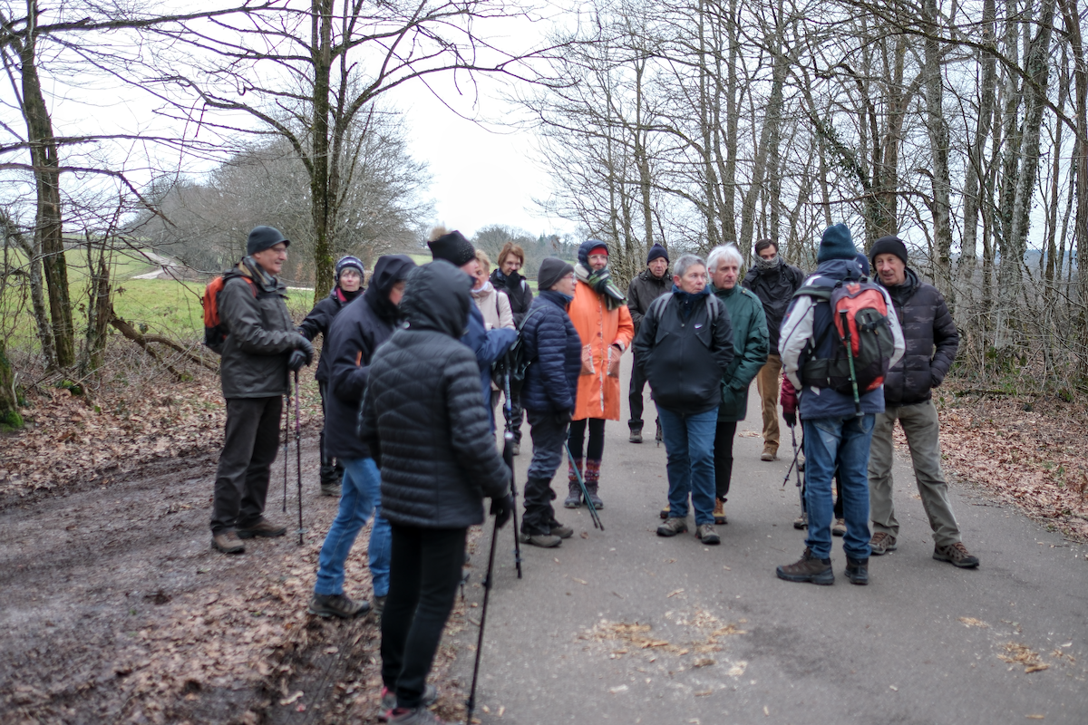 20 marcheurs se sont retrouvés pour la 423e randonnée, sous un ciel gris qui finira par délivrer des gouttes sur la toute dernière partie du parcours. Les chemins étant quasi impraticables en raison des pluies de ces derniers jours, le circuit de 6,5km a privilégié les routes en passant par la rue Bellevue, la Croix, les Revirons, les Grandes Pièces, passage à la tourbière de la Fontaine Sainte, au stade, et retour par la chaussée entre les deux étangs. Comme d’habitude la marche a été émaillée de commentaires, lecture de paysage… Prochaine randonnée le 8 mars, 14h.