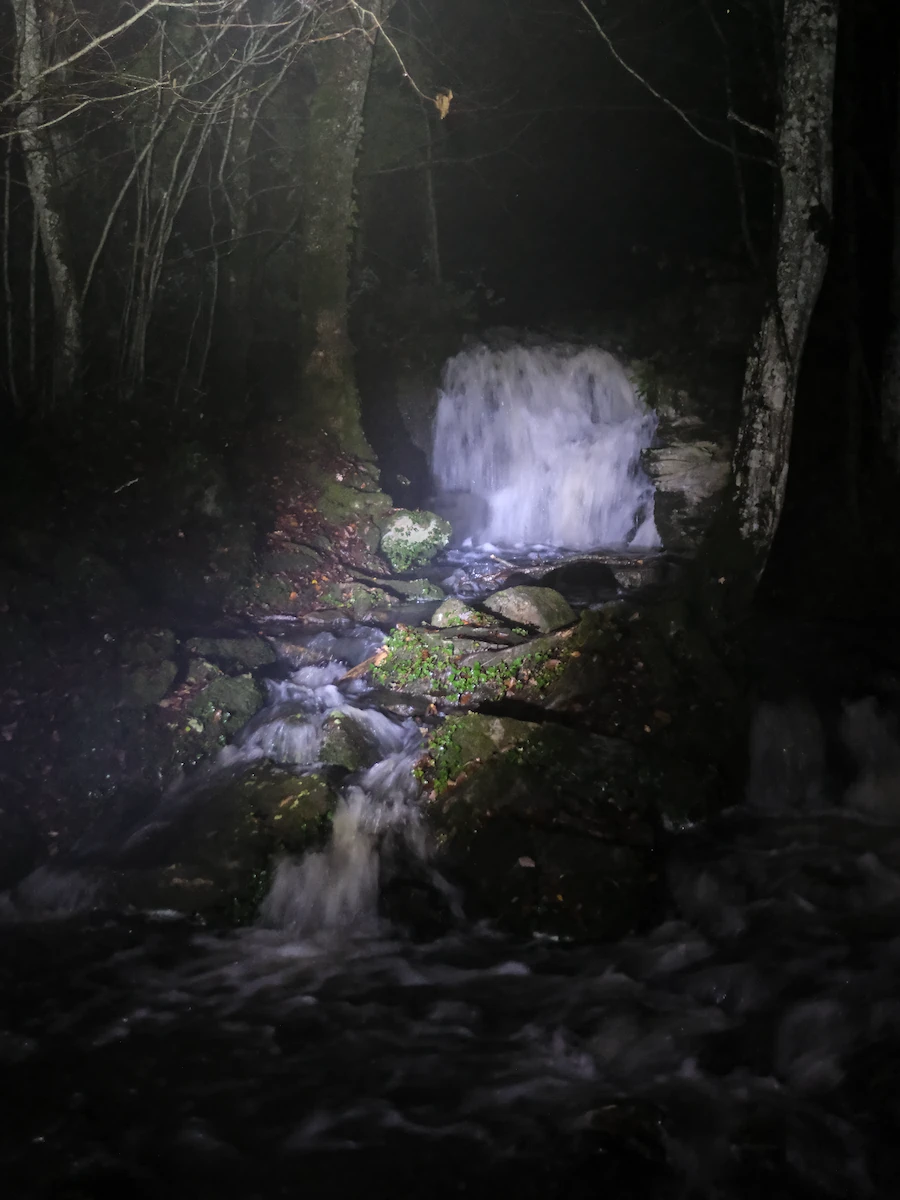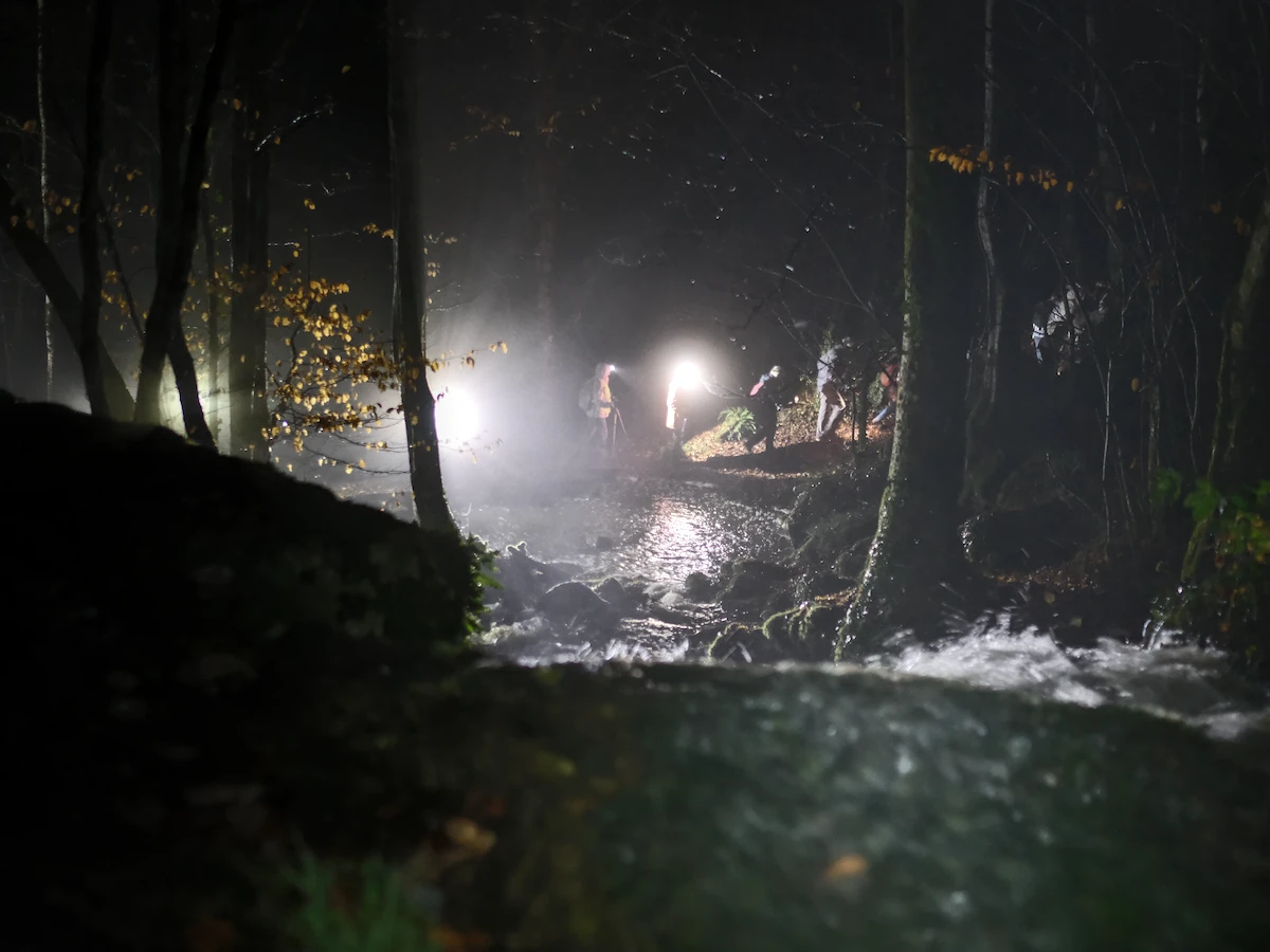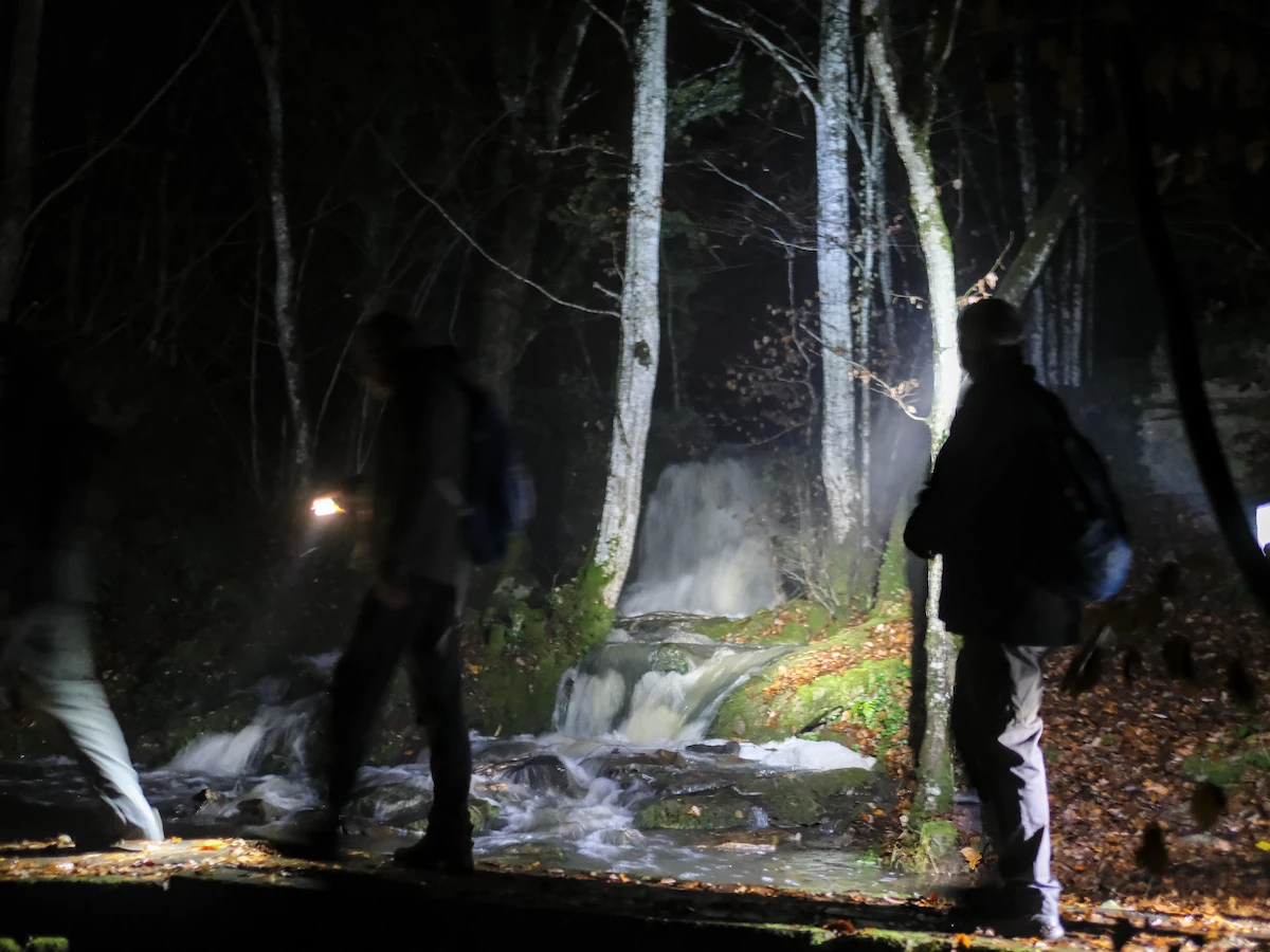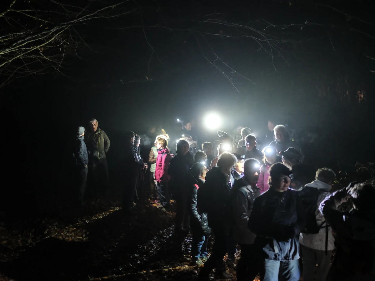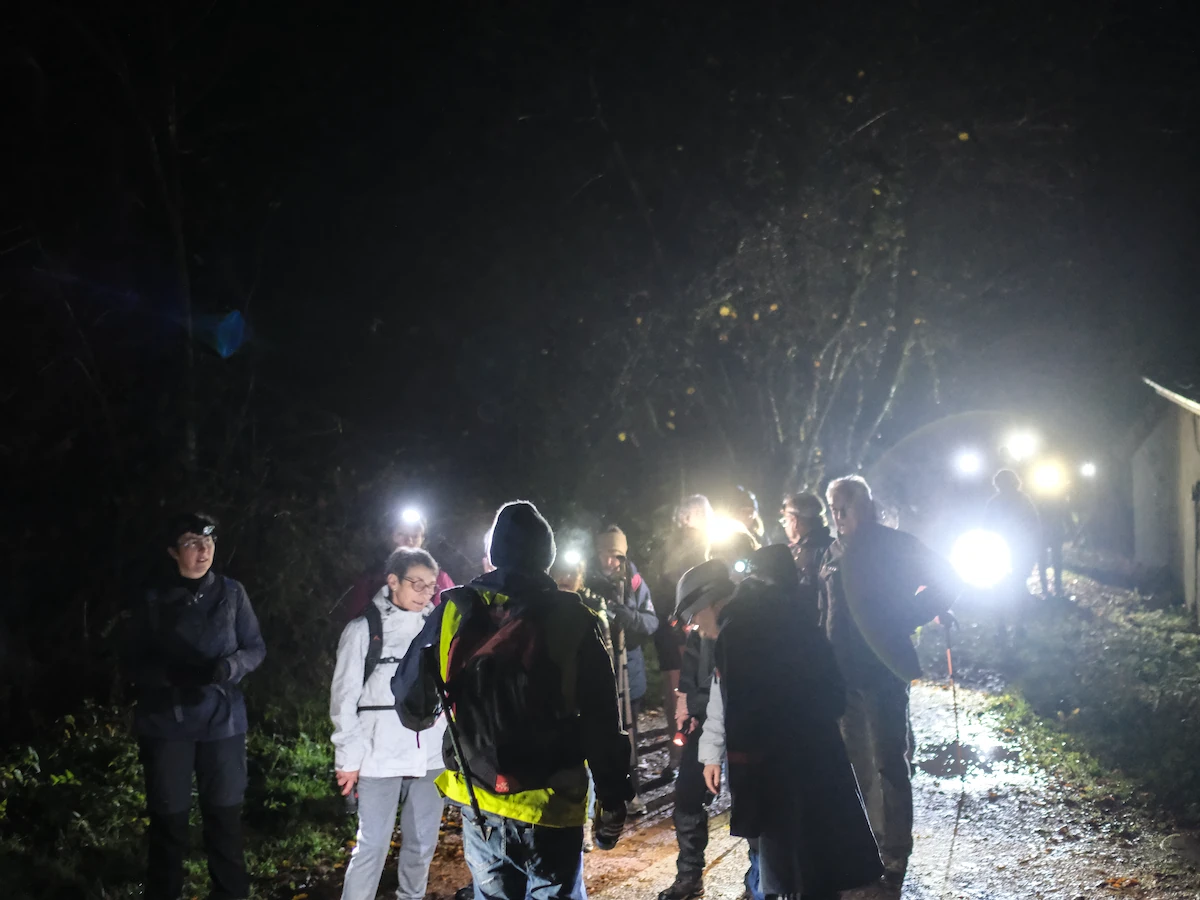 43 marcheurs se sont donnés rendez-vous samedi soir pour la 29ème randonnée nocturne des amis et la 1ère depuis 2019. Le parcours a évité les chemins rendus trop glissants ou humides par les pluie des dernières 24h, en passant par les Mitteaux, Les Grandes Pièces, la Borne creuse, la Pissoire (bien alimentée en eau, voir photos ci-dessous), avant de revenir par la sommière des Germenets puis descente par les Morlots, et retour par le barrage.