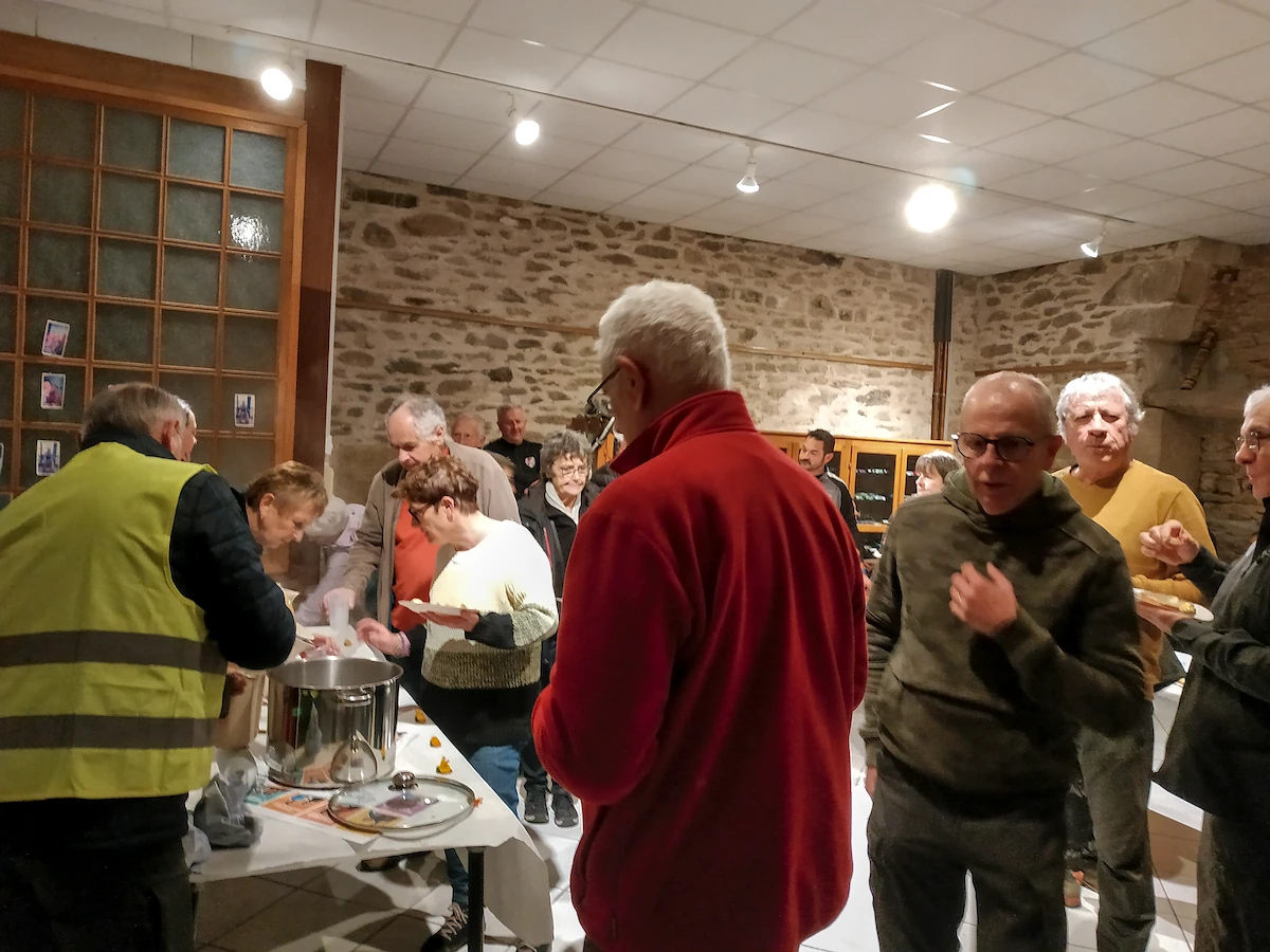 À l'arrivée les marcheurs ont pu apprécier le ravitaillement avec assiette salée / sucrée et un vin chaud ou chocolat chaud dans une salle de la tour.